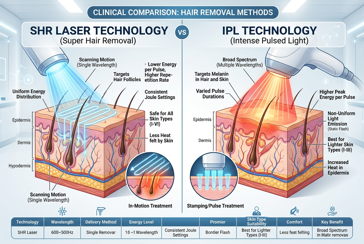 SHR脱毛と、IPL脱毛、どちらを選ぶべきか、それぞれの特徴を理解しておきましょう。